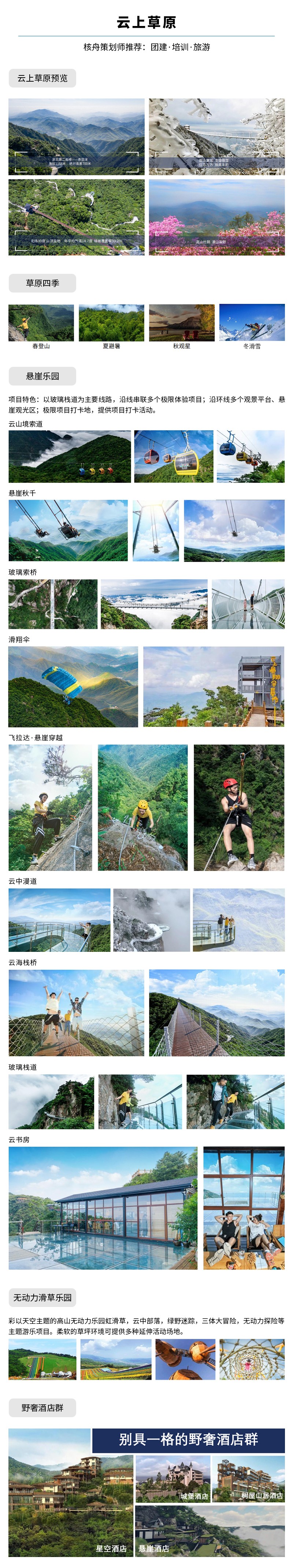 核舟安吉團(tuán)建基地-云上草原高山四季旅游度假區(qū),位于安吉山川鄉(xiāng)境內(nèi),項(xiàng)目總投資30億元,距離杭州市區(qū)僅50公里。坐擁稀缺的高山自然資源,造就了“云上一天 草原四季”的獨(dú)特美域。項(xiàng)目規(guī)劃有高山核心體驗(yàn)區(qū)“雪嶺峰”、輕養(yǎng)歸隱生活區(qū)“云山境”、山地運(yùn)動(dòng)長(zhǎng)廊“七星谷”、購(gòu)享主題小鎮(zhèn)“浮云鎮(zhèn)”、田園樂(lè)世界“云朵農(nóng)場(chǎng)”五大板塊,重點(diǎn)打造“星空滑雪場(chǎng)、懸崖樂(lè)園、無(wú)動(dòng)力滑草樂(lè)園、天空水世界、野奢酒店群”五大內(nèi)核項(xiàng)目及民宿、溫泉度假等六大配套,旨在為游客提供“春登山 夏避暑 秋觀星 冬滑雪” 的高山四季度假全體驗(yàn)。