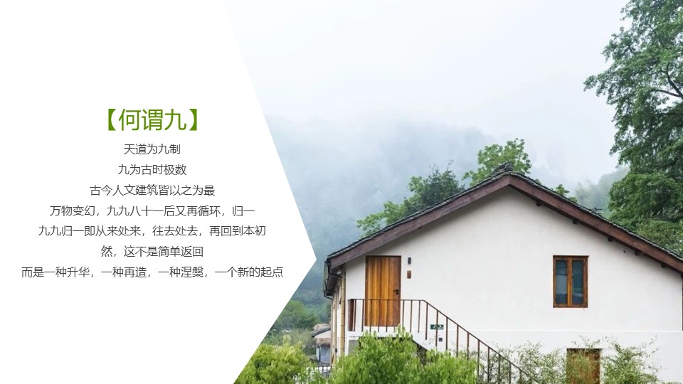 一元復始,萬象更新;一山九舍是一種生活態度;一種中國人獨有的雅致生活;一種陶淵明式的歸園田居。
