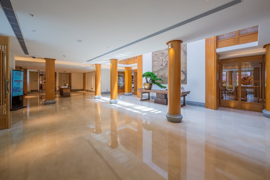 酒店采用中國徽派傳統(tǒng)文化中的布局方式,把酒店建筑群分割成若干幾何方塊,賦予整個建筑群落以無形的生命。