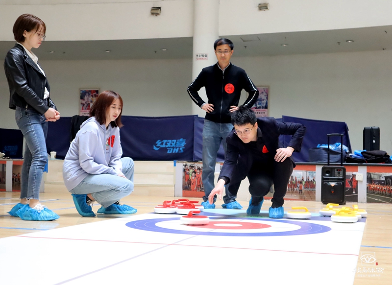 在教練的講解規(guī)則后,旱地冰壺比賽正式開(kāi)始。比賽雙方你來(lái)我往,競(jìng)爭(zhēng)激烈,一個(gè)回合下來(lái),每個(gè)隊(duì)伍都在商討著“作戰(zhàn)計(jì)劃”,并根據(jù)場(chǎng)上的局勢(shì),隨時(shí)變換“策略”。