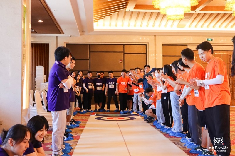 為增進(jìn)新員工之間的親密感、凝聚力,公司選擇了旱地冰壺、玩霸江湖以及納斯卡巨畫,作為新員工團(tuán)建拓展活動項目。簡單的暖身破冰小游戲后,新員工們被分為八個小分隊。分隊通過選擇隊長、確立隊名、繪制隊旗、制定口號來完善團(tuán)隊的組建。通過分組形式,迅速建立溝通環(huán)境,初步形成團(tuán)隊氣氛。