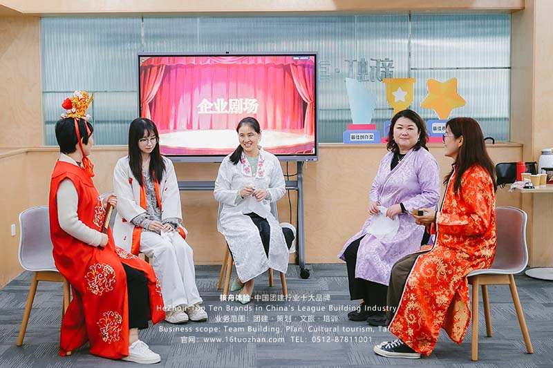 本次工坊摒棄傳統團建的刻板模式,以“戲劇聯結職場”為核心思路,讓非演員出身的參與者快速融入創意實踐?;顒又?,各團隊圍繞經典IP進行劇情重構,將職場協作理念巧妙融入演繹:《西游記》里的取經團隊化身“天庭創業組”,以協作精神攻克難題,最終用科技思維助力天庭發展;《紅樓夢》則濃縮為3分鐘短劇《詩社聯句》,王熙鳳用“teamwork”“團建”等現代詞匯制造反差,林黛玉在眾人包容下放下顧慮,以“同心協力譜華章”點出團隊核心;《甄嬛傳》跳出宮廷框架,以“江南同行”的劇情讓角色在結伴中凝聚信任。這些創新演繹既保留經典韻味,又精準傳遞了職場協作的核心價值,讓參與者在歡笑中加深聯結。
