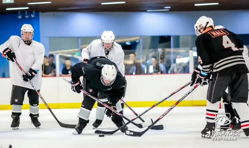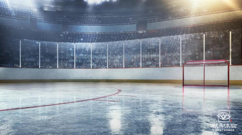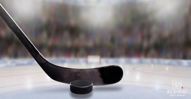 在設(shè)有界墻的冰場上爭奪一橡膠扁圓球,以擊入對方球門得分。