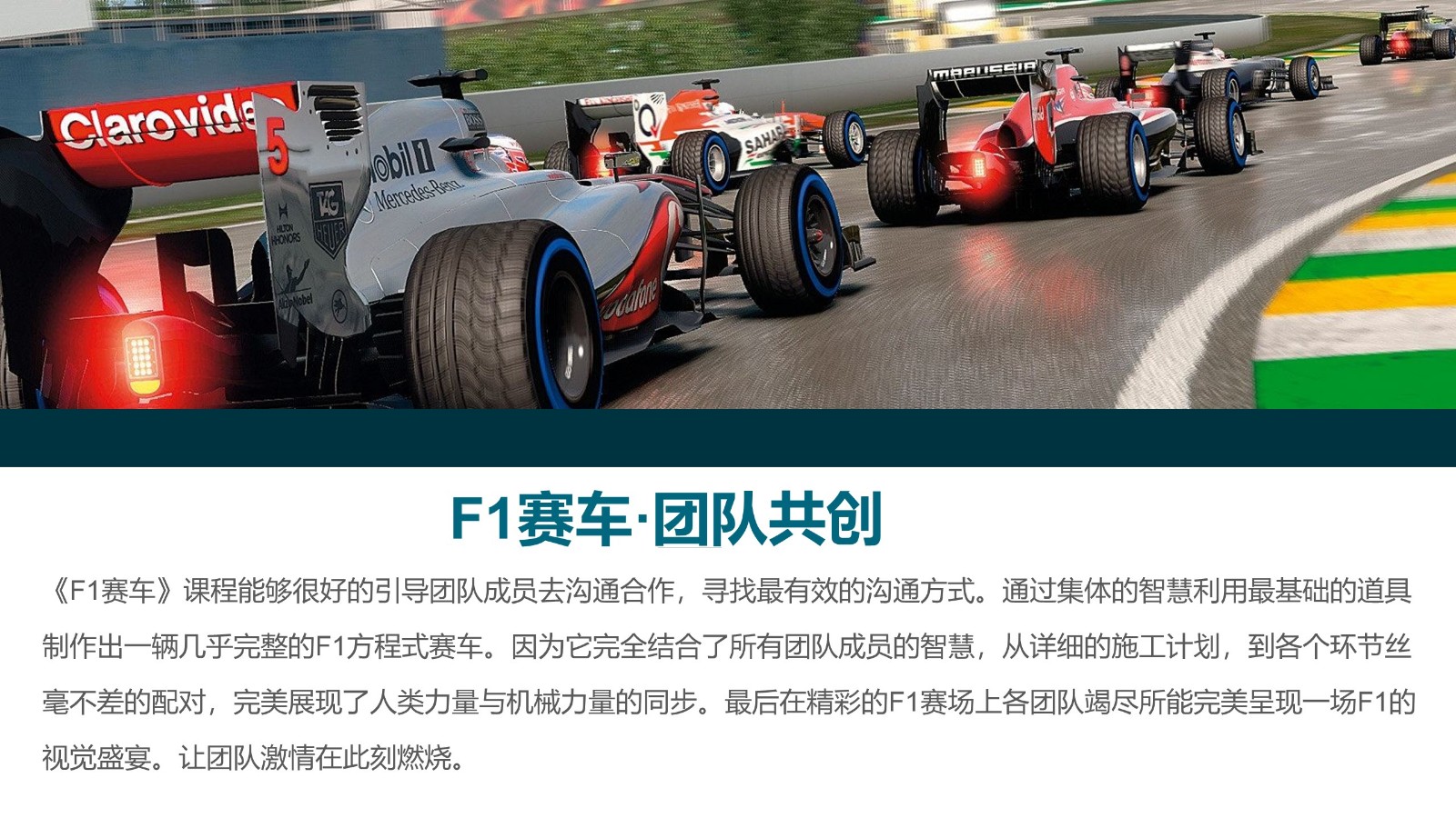 歷時(shí)3年百場(chǎng)賽車團(tuán)建經(jīng)驗(yàn)萃取。速度與激情 創(chuàng)新與執(zhí)行 協(xié)同與效率 共創(chuàng)與凝聚;