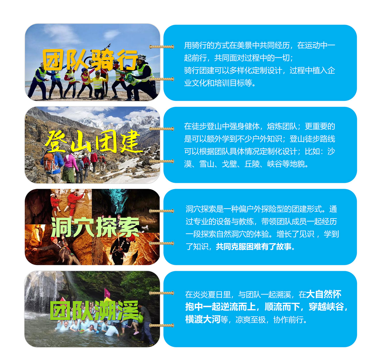 戶外運動團建,用多元化的戶外運動方式達到強健身體,熔煉團隊的目的;